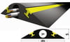 This unique traffic calmer range is two products in one. It helps control the speed of traffic and at the same time covers heavy duty cables or cable looms. Highly visible yellow hazard strips on both sides of the profile give early warning to fork lift, pallet truck and lorry drivers of the danger of speed in confined areas. The yellow hazard strips and the walls of the aperture are rounded whilst the top of the traffic calmer is convex, allowing traffic to run over with minimal wear and tear to the profile.