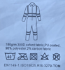 Only the outer shell of this garment conforms ISO 15025 anti static EN1149 it must only be used over EN533 INDEX 2 or 3 material. Do not use next to the skin.