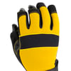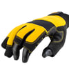 Work gloves with a soft neoprene wrist band for added comfort and an easy pull-on tab. Other features include a terrycloth backhand for wiping sweat away from the brow and a three-finger design to allow more dexterity. The end two fingertips are reinforced to provide longer wear and the reinforced padded palm adds toughness to the glove.