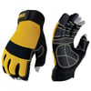 Work gloves with a soft neoprene wrist band for added comfort and an easy pull-on tab. Other features include a terrycloth backhand for wiping sweat away from the brow and a three-finger design to allow more dexterity. The end two fingertips are reinforced to provide longer wear and the reinforced padded palm adds toughness to the glove.