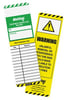 Purpose designed status insert to help control frequent inspections, maintenance and identification of MEWPs (Mobile Elevating Work Platforms). The insert contains an easy-to-follow pre-use operator checklist on the front and the facility to record up to 32 inspections on the reverse. Designed to operate alongside MEWP Tag holder. Specifications