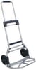 Sturdy hand truck which folds flat for easy storage. Automatically folds completely flat as the handle is pushed down, can be erected with one hand. Ideal to keep in the boot of your car