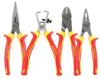 | These Stanley FatMax VDE pliers are manufactured to exacting European standards and individually tested to 10,000 volts and approved for working around live circuits that do not exceed 1,000 volts. The bi-material handles offer the user improved control and grip, incorporating slip guard shoulders for additional safety. They are made from a heat treated, high chrome steel forging for long life and have hand ground, induction hardened blades. DIN ASO ANSI compliant. This 4 piece set contains the following: 1 x 165mm Combination Pliers. 1 x 175mm Diagonal Cutting Pliers. 1 x 160mm Half Round Nose Pliers. 1 x 170mm Wire Stripping Pliers. |