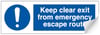 Keep Clear Emergency Escape Route Sign - 300 x 100Hmm - Self Adhesive Vinyl - [AS-MA33-SAV]