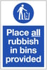 Blue Sign - Place All Rubbish In Bins Provided Sign - 200 x 300Hmm - Self Adhesive Vinyl