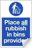 Place Rubbish in Bins Sign LARGE - 400 x 600Hmm - Self Adhesive Vinyl - [AS-MA14-SAV]