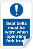 Seat Belts when Operating Fork Truck Sign LARGE - 200mm X 300mm - Self Adhesive Vinyl - [AS-MA204-SAV]