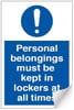 Personal Belongings Locker Sign - 200 x 300Hmm - Self Adhesive Vinyl - [AS-MA207-SAV]