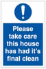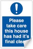 Blue Please Take Care this House has had it's Final Clean Sign - 200 x 300Hmm - Self Adhesive Vinyl