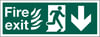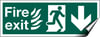 Fire Exit Pointing South Sign - Conforms to the New ISO 7010 Standard - Tests Have Shown the Inclusion of the Flame Symbol Significantly Assists in Recognition and Understanding of the Meaning of the Escape Symbol - Self Adhesive Vinyl