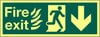 Photoluminescent Fire Exit Pointing South Sign - Conforms to the New ISO 7010 Standard - Tests Have Shown the Inclusion of the Flame Symbol Significantly Assists in Recognition and Understanding of the Meaning of the Escape Symbol - Self Adhesive Rigid Plastic