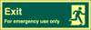 Photoluminescent Exit For Emergency Use Only Sign - 400 x 150Hmm - Self Adhesive Rigid Plastic - [AS-PH267-SARP]