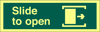 Photoluminescent Slide to Open Sign - Pointing East - 300 x 100Hmm - Self Adhesive Rigid Plastic - [AS-PH63-SARP]