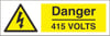 Danger 415 Volts Sign LARGE - 600 x 200Hmm - Rigid Plastic - [AS-WA4-RP]