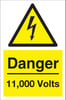 Danger 11,000 Volts Sign - 200 x 300Hmm - Rigid Plastic - [AS-WA9A-RP]