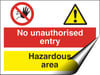 No Unauthorised Entry Hazardous Area Sign - 400 X 300Hmm - Self Adhesive Vinyl - [AS-CO9-SAV]