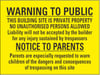 Warning to Public No Liability and Notice to Parents Sign - 600 X 450Hmm - Fluted Correx 4mm - [AS-CX23-FC]