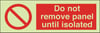 Photoluminescent No Not Remove Panel Until Isolated Signs - 300 X 100Hmm - Self Adhesive Rigid Plastic - [AS-PH48-SARP]