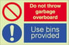 Photoluminescent Do Not Throw Garbage Overboard Signs - Use Bins Provided - 300 X 200Hmm - Self Adhesive Rigid Plastic - [AS-PH316-SARP]