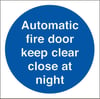 Automatic Fire Door Keep Clear Close At Night - BS5499 Part 1 & 5 - 100 X 100Hmm - Rigid Plastic - [AS-MA179-RP]