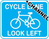 Cycle Signs - Cycle Lane Look Left With Fixing Channel - FIXING CLIPS REQUIRED - Class 1 Ref BSEN 12899-1 2001 - 700 x 430Hmm - Reflective - 3mm Aluminium - [AS-TR140C-ALU]