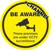 Street Signs - BE AWARE CCTV With Fixing Channel - FIXING CLIPS REQUIRED - 450 dia - Reflective - 3mm Aluminium - [AS-WA100EC-ALU]