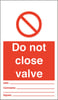 Tye Tags - Do Not Close Valve - 80 X 150Hmm (Pack of Ten) - Rigid Plastic - [AS-PR601-RP]