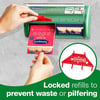 The plaster refills are locked in the dispenser to make sure they do not disappear. Easy to empty and replace refills using a special key