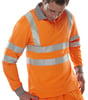 Beeswift Hi Vis Quality Orange Long Sleeve Polo Shirt - Grey Collar - BE-BPKSLSEN/OR