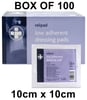 Sterile, low adherent dressing pads, designed to be applied to a wound from either side, thus preventing incorrect application. The dressing is low adherent with high absorbency, effectively drawing exudate away from the wound. For use on abrasions, lacerations and moderately exuding wounds. Soft, comfortable and conformable. Secure with tape or a conforming bandage.