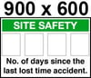 Site Safety Days Since Accident Sign - 900mm x 600mm - AS-BASE10