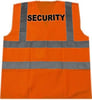 | Security printed on the front and back in black This is the extremely popular, highly versatile and economical Hi-Vis vest. It is suitable for numerous applications that have a high visibility requirement such as traffic and security. This vest complies with EN471 offering class 2 (intermediate) protection. |
