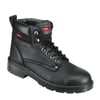 Conforms to EN 20345:2011 200 Joules S3. Water repellent leather upper fully lined with breathable comfort lining. Padded collar for added comfort. Cushioned foot-bed for additional underfoot comfort. Anti-static dual density slip resistant sole to 120c heat resistance with ladder grips. Pierce resistant stainless steel midsole. |