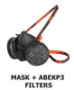The mask body is made of flexible black rubber. Both the material and its shape and dimensions allow a snug, leakproof fit, thereby preventing air leaks toward the inside where the mask touches the face. The mask has a centre hole to house the exhalation valve holder plus two additional holes on the sides to adjust the connectors for the inhalation valves.
