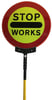 Ultra-Compact Folding Lollipop "Stop Works" Sign - 450mm Diameter - Sign face with Standard Grade Reflectivity - [QZ-7031.450.STD]