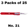 The Swann-Morton Retractable safety scalpel supports and enhances safe passing procedures and protocols already practiced within the Operating Room and Theatres. Colour-coded for ease of blade shape recognition the scalpels feature a strong temporary forward lock position to prevent uncontrolled retraction when contacting with bone during use, an additional notch to hold the blade more securely in the passing position and a rear permanent lock to be engaged prior to final disposal in a sharps container. The Retractable Scalpels are available in a range of sizes and blade designs to suit most purposes. They are supplied sterile and individually wrapped in packs of 25. Features: