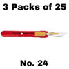 The Swann-Morton Retractable safety scalpel supports and enhances safe passing procedures and protocols already practiced within the Operating Room and Theatres. Colour-coded for ease of blade shape recognition the scalpels feature a strong temporary forward lock position to prevent uncontrolled retraction when contacting with bone during use, an additional notch to hold the blade more securely in the passing position and a rear permanent lock to be engaged prior to final disposal in a sharps container. The Retractable Scalpels are available in a range of sizes and blade designs to suit most purposes. They are supplied sterile and individually wrapped in packs of 25. Features: