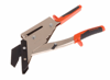 | Plier action roof slate tile cutter with spring loaded handles. This model also has a slate hole punch which operates by closing the handles. Approx length: 300 mm /12in. Features: Replaceable blade and punch. Punch diameter: 3.2 mm (1/8in). Cutting length: 35 mm per single pressure. Cutting width: 2.8 mm (0.109in). |