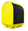 | 4 Drum Polyethylene Spill pallet with rigid polythene cover and sliding door, lockable and fully compliant Size: 1470 x 1420 x 2070mm *This item can be delivered to UK mainland ONLY and because of size/weight, it has a higher delivery charge. (Included in the price) |