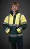 EN1150: 1999. A great choice of vibrant contrast colours waterproof & windproof jackets with the enhanced visibility for children’s safety.