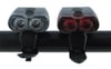 This Rechargeable Light Set provides illumination and visibility for low-light rides. A choice of red or white bulbs and three light settings allow you to adjust the settings for changing conditions. The lights are fully USB rechargeable using the cable included. Hooking easily onto the handlebars these lights provide a simple, lightweight and effective way to make night-riding safer.