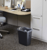 The medium Rubbermaid rectangular wastebasket is ideal for recycling under a desk or deskside. It is slimline and practical, easily fitting flush against the wall or by/under a desk. The all-plastic construction means no chipping or rusting, and it is a very hardy bin.