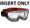End of Line - Limited Stocks Easy fitting prescription inserts. Can be placed behind anti fog and anti-scratch one piece polycarbonate lens providing visual assistance and protection in one compact solution. Method for adding prescription lenses to RX insert: Take your 'Goggle and RX insert' to a high street optician and ask for the RX insert to be glazed with your relevant prescription. The optician will send the RX insert away to a lab for glazing. Once this is complete the insert is ready and can be simply inserted into the goggle housing ready for immediate use.