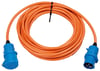 Pre-wired 240V 16A mains plug and socket/coupler to 25m of orange mains cable