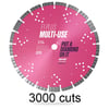 3000 cuts. Available in five sizes. This top, multi-use diamond blade has 21 segments and concise distinct markings. 11mm segment height and extra deep segments eliminate centre plate undercutting caused by abrasive particles. |