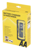 The AA Battery Charger & Maintainer, used and approved by AA Patrols, is an intelligent & smart device suitable for most car batteries. Ideal for situations where a top up-charge is needed and where you need the assurance that the charge level is accurate and safe to minimise any possible risk of battery damage. The inbuilt microprocessor senses the condition of the battery and controls the regulator to provide the right current and voltage to suit the correct level of charging.