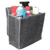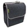 Stylish grey carpet bag with a contrasting lighter grey binding. Ideal for storing items in your car. Features a handy flip top closing secured with hook and loop fastening and comes in stylish grey carpet with a contrasting lighter grey binding.