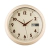 Made using durable metal, the clock is given a cream finish which complements the cream face making it a neutral feature on your wall. Brown numbers and hands are accentuated against the clock face making it easy to read, even at a glance. To the right of the clock face, the day and date can be read clearly, so you can be reminded what day of the week it is when filling out forms or setting dates for the diary. A stylish and practical addition in your bedroom, dining room, kitchen or living space, the durable clock will stand the test of time. Features: