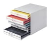 Organisation of documents made easy: drawer boxes in modern VARICOLOR® design. Drawers in vibrant colours help categorisation of documents and also look attractive on any desk offering sleek coloured contours when the drawers are closed.