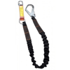 Elasticated webbing lanyard with Carabiner and Scaffold Hook. Includes energy shock absorber.